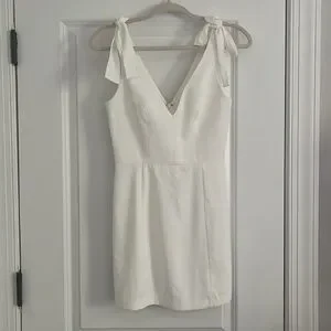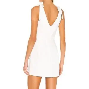 I purchased for my courthouse ceremony but didn’t end up wearing. Purchased from Revolve. This brand does not come with tags on the items, but it is brand new and never worn. The color is listed as ivory, but I believe it is more white than ivory.