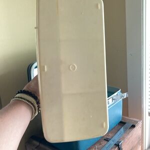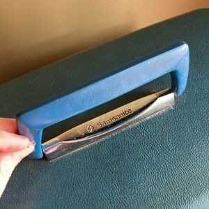 This is a blue vintage Samsonite train case from the 1900s. The interior does need a little bit of TLC. However, for its age is in pretty good condition. The mirror is intact pockets inside intact handle is intact is intact with no stains. Perfect for storage organization, make up travel, etc.. perfect for so many things.