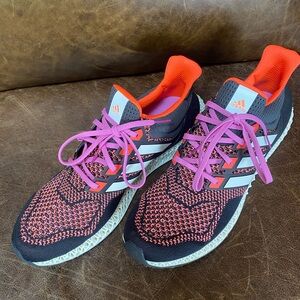 For Sale are These Adidas Ultra4D Black/Pink/Orange Running Shoes Size 13. Excellent Previously Owned Condition. Small scuffs on inner heels.