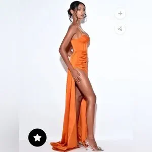 Elayna Orange Strappy Satin Corset High Slit Gown