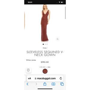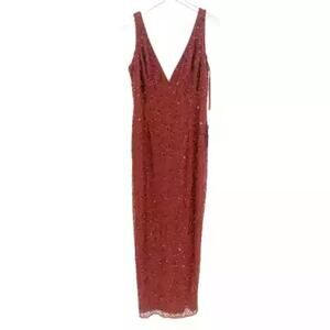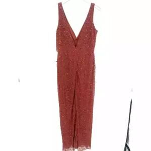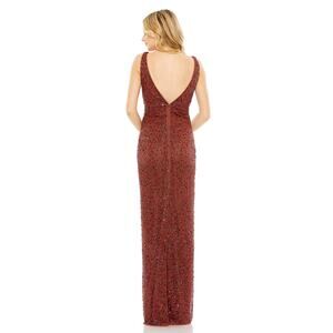 MAC DUGGAL Evening Gown Sequin Red Brick Beaded V Neck Dress Size 6 NWT
