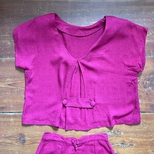 Vintage Red Flax Rayon matched set XS