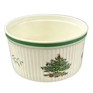 Spode Christmas Tree Porcelain Souffle Dish Serving Bowl 3 Pint Made in England