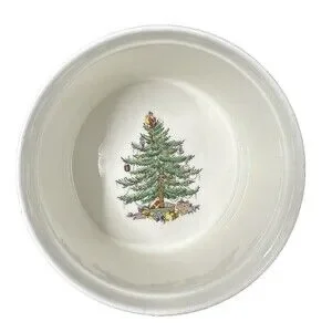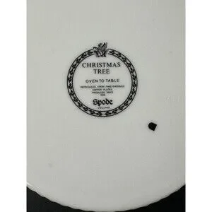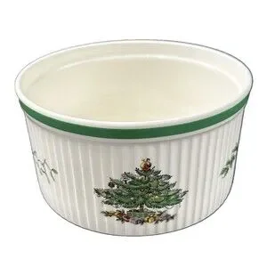 Add a touch of elegance to your Christmas table with this beautiful Spode souffle dish. Crafted in England from fine porcelain, it features a charming Christmas tree pattern in multicolor. Measuring 7 inches in diameter and 3.75 inches in height, it's the perfect size for serving your favorite souffle or other dishes. This art pottery piece is not only visually appealing but also functional, with an oven to table feature that adds to its charm.