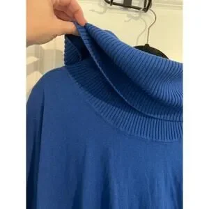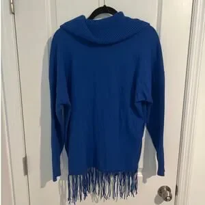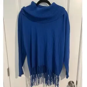Michael Kors Long Sleeve Drape Cowl Neck Fringe Hem Knit Sweater Blue Women's 0X