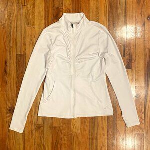 Women's Long Sleeve Athletic Full Zip Stretchy White Sweatshirt Size Small