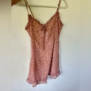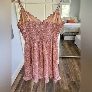 super cute pink urban outfitters dress with tie in the front and floral design. very flattering fit, never worn, originally $65