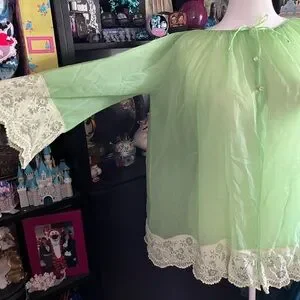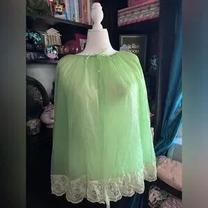 Vintage lime green robe or bed jacket chiffon and lace
