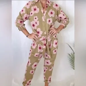 NWOT Acacia Palmer Jumpsuit in ISLET. Very popular print. Size Large. Organic Cotton. Removed tag but never worn.