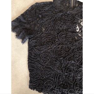 Brand new with tags, Zara Trafaluc black lace top sz S. Beautiful blouse! Rope detailing in front, eyelash lace hems, zip closure all the way up the back. Autumn/Winter collection. Polyester/nylon blend. A few small flaws that can easily be fixed or left, not really noticeable IMO.