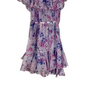Cari Capri Floral Print Barbados Mini Dress Size XS Ruffle Purple Off Shoulder