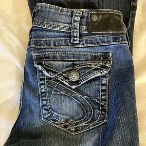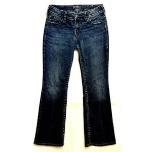 Step out in style with these gorgeous silver Women's Suki Bootcut Jeans. Great pre-owned condition. No Smoking Home. Please see Description and pictures. Low Rise 8"