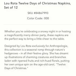 2023 Lou Rota twelve Days of Christmas napkin set of 12