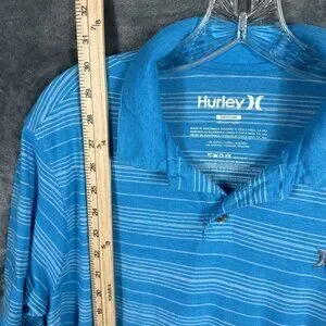 Elevate your wardrobe with these stylish Hurley shirts for men in size medium. The collared neckline and pullover closure make them versatile for any occasion, whether it's a casual day out or a business meeting. The striped pattern and blue color add a touch of sophistication, while the button and logo accents give them a unique flair.