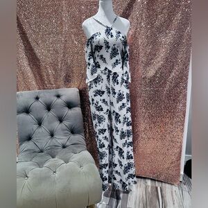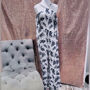 Jumpsuit/Romper - White with Blue Floral Design by VENUS