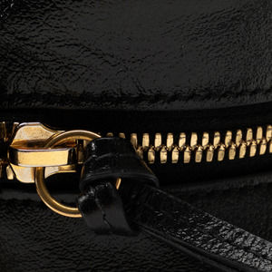 The Marmont Matelasse Camera bag features a canvas body with leather sides, a flat leather strap, a top zip closure, and an interior slip pocket.