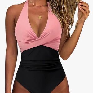 Women Sexy Tummy Control One Piece Swimsuits Halter Push Up Bathing Suits