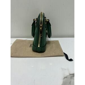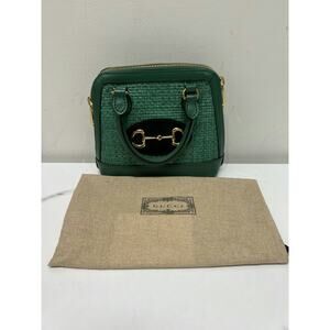 This Gucci 640716 Green Woven Leather Mini Boston Bag is a stunning piece that combines style and functionality. The luxurious woven leather in a vibrant green hue, complemented by gold-tone hardware and horsebit detail, makes this bag a standout accessory. It is in excellent condition and includes the original Gucci dust bag. Perfect for everyday use or special occasions, this mini Boston bag is a must-have addition to any fashion-forward collection.