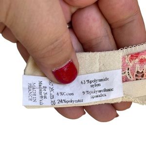 Vintage 90s Lise Charmel cream pink & green lacy bra