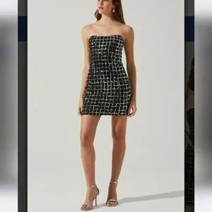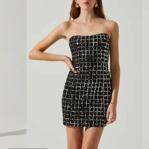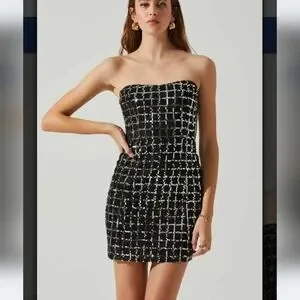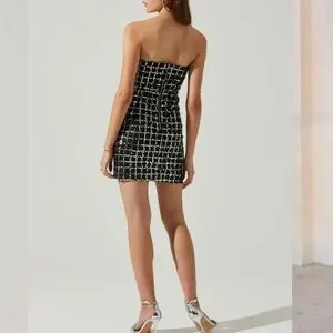 NWT ASTR The Label Carmen Sequin Strapless Mini Dress-Black/Silver