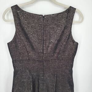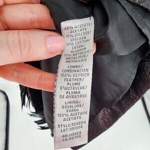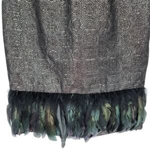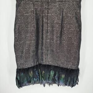 Badgley Mischka Feather Hem Cocktail Dress 10 Metallic Brocade Sleeveless Black