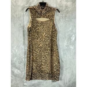 BAR III Women's Cheetah Printed Sleeveless Mock-Neck Cutout Bodycon Dress SZ XL
