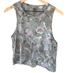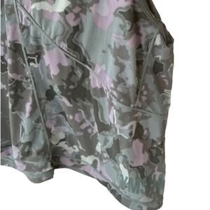 Gymshark camo print active tank top in a pink/ green camoflauge print. Scoop neck, larger arm holes with contrast stitching detail and shorter/crop cut. Excellent condition. No callouts. Fabric is nylon and elastine for a lightweight, slightly sheer material.