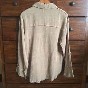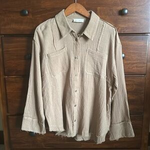 Stay on trend with this NWOT gauze top with distressed edges. Perfect to carry you into fall with this warm brown tone. Super cute paired with your favorite denim. Message with questions!