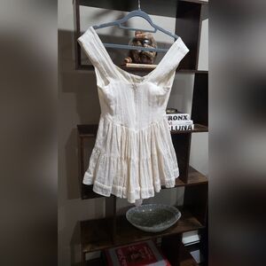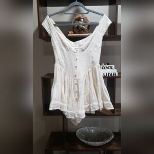 Vanessa Mooney The Elisabeth Romper Dress-Linen Style Cream Size Small