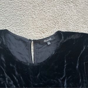 Madewell velvet blouse in black. Rounded hem, loose fit. Measurements pictured. Size XL