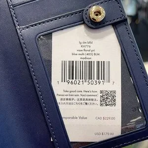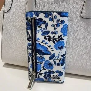 Kate Spade Madison Vase Floral Large Slim Bifold Wallet Blue Multi NWT