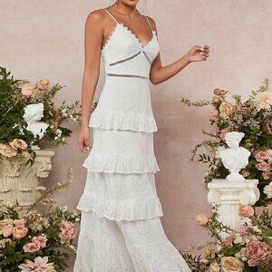 White Elegant Women's Tiered Ruffle Lace Cami Dress
