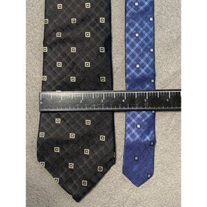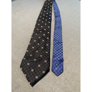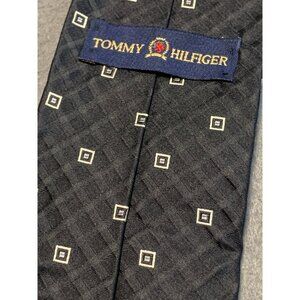Tommy Hilfiger Mens Silk Tie Black and Blue Geometric Patterns Necktie