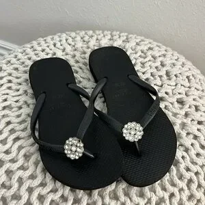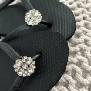 Gently worn crystal embellished flip flops. One stone missing as pictured.