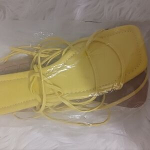 Women light yellow open toe lace up flat sandals