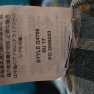 Excellent condition! Tartan print with blues, cream, and a small yellow line. Irish linen. Button down front, chest pocket, button cuffs.