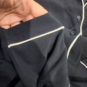 notes: Extra button still attached I. black with white contrast line.