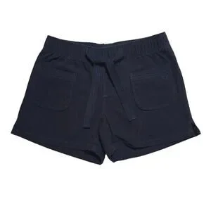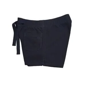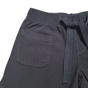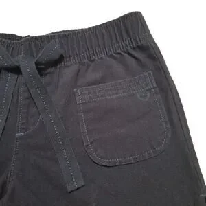 Features: pull-on style, fully elasticated waistband, functional cotton twill drawstring, front patch pockets with decorative topstitching, split side seams