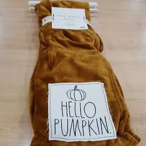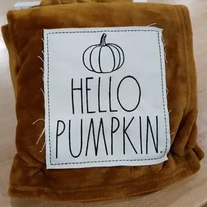 Rae Dunn HELLO PUMPKIN blanket NWT is adorable and so cozy. Rusty brown in color and super soft. 50x70"