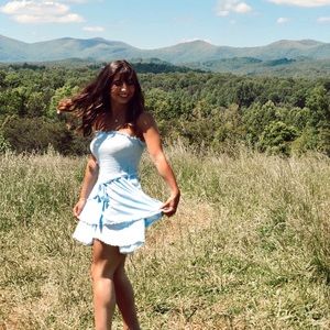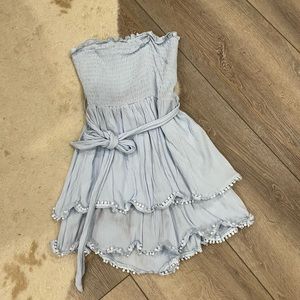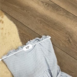 Light blue ruffled tiered smocked strapless romper