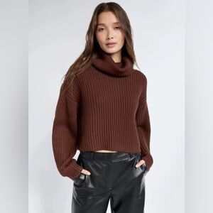 NEW Aritzia Babaton Guell Merino Wool Turtleneck Sweater in Brown | size S