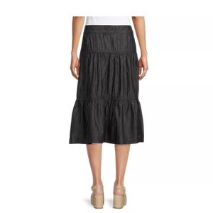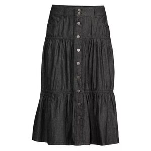 Time and Tru Black Denim Tiered Button Down Skirt Size 8 NEW