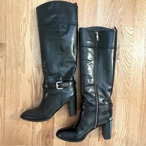 Tory Burch Blaire Tall Riding Boot Black Leather Size 8