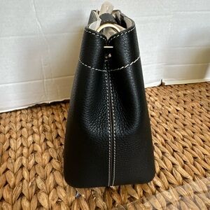 New Tory Burch Felix Bucket Bag Leather Black Crossbody Purse 144028