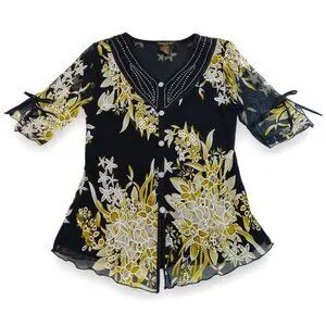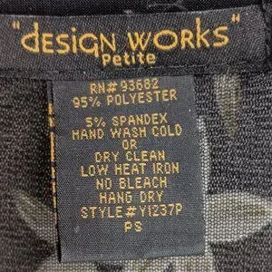 Design Works- Women's Top-Black, Green-White floral- PSMALL-Lined 3/4 Sleeve