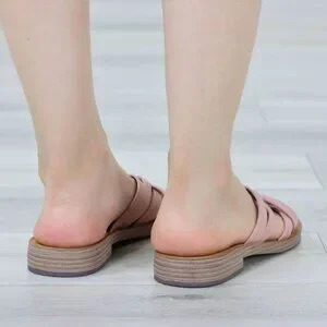 Pink Flat Slip On Sliders Sandal Strappy Trendy Comfort Lightweight