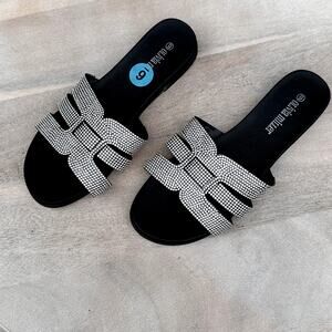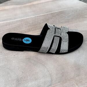 Olivia Miller Womens Size 6 Slides Saltspring Rhinestone Black Sandal Shoe New