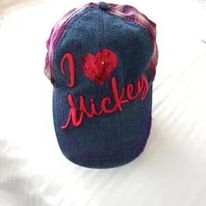 I Love Mickey hat denim and Plaid adjustable