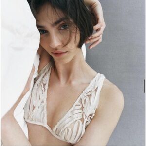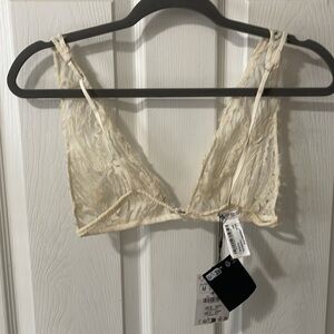 New with tags! Featured in many magazines! The perfect bralette for weddings or just to wear with a cute outfit! Zara lace bracelet. Adjustable straps and back hook!