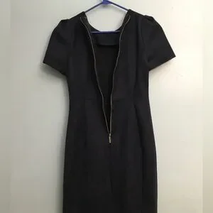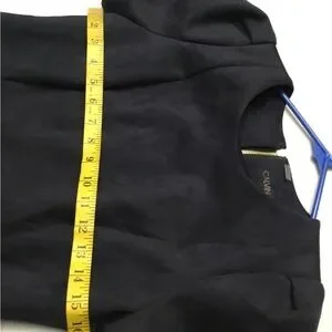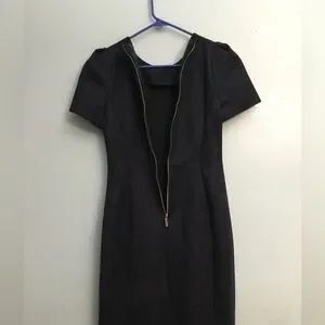 This dress is brand new. It was never worn. The details are in the pics. It has a suede like feel to it. Navy color